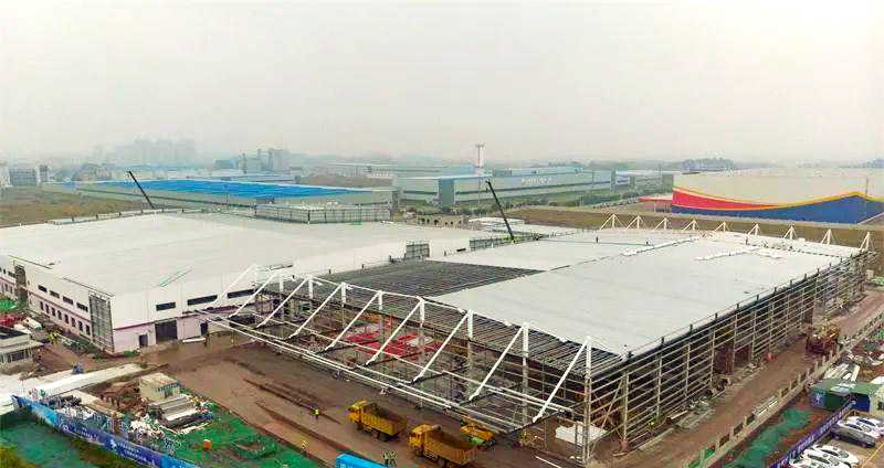 近日,四川內(nèi)江飲料生產(chǎn)基地廠房主體鋼構(gòu)已圓滿收工,目前正聚焦于外立面的施工細(xì)節(jié),同時展開倉庫屋頂頂棚鋼板的鋪設(shè)工作。