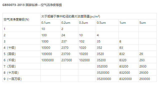 空氣潔凈度等級(air cleanliness class):潔凈空間單位體積空氣中,以大于或等于被考慮粒徑的粒子最大濃度限值進行劃分的等級標準。國內(nèi)按空態(tài)、靜態(tài)、動態(tài)對無塵車間進行測試、驗收,符合《GB50073-2013 潔凈廠房設(shè)計規(guī)范》、《GB50591-2010 潔凈室施工及驗收規(guī)范》。