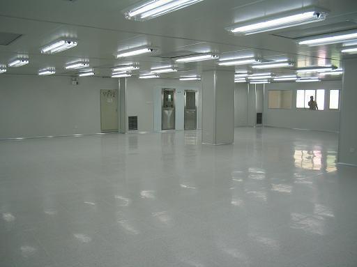 圓弧墻角、門、窗框等一般采用專用氧化鋁型材制造地面可采用環(huán)氧自流坪地坪或高級耐磨塑料地板,有防靜電要求的,可選用防靜電型。