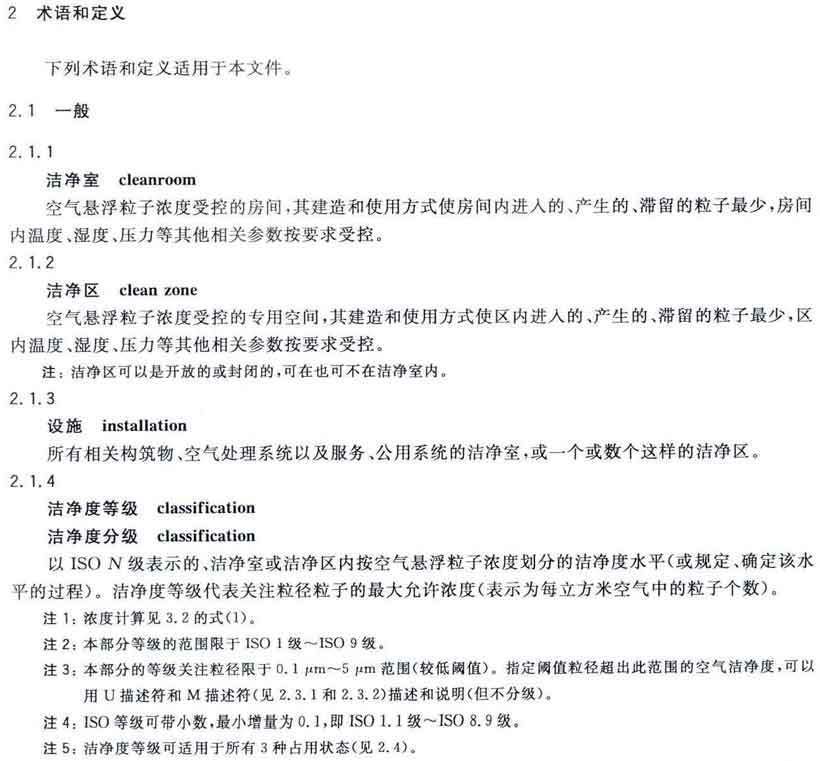 潔凈室及相關受控環境第1部分:空氣潔凈度等級 GB/T25915.1-2010