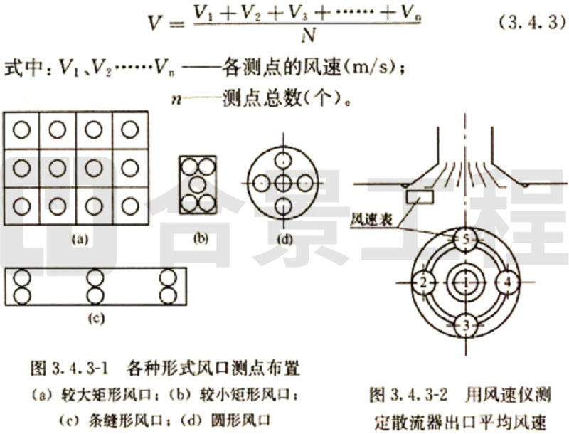(2)當采用熱電風速計或數(shù)字式風遺計測量風量時,斷面平均風速為各測點風速測量值的平均值,實測風量和標準風量的計算方法與畢托管和微壓計測量計算方法相同。